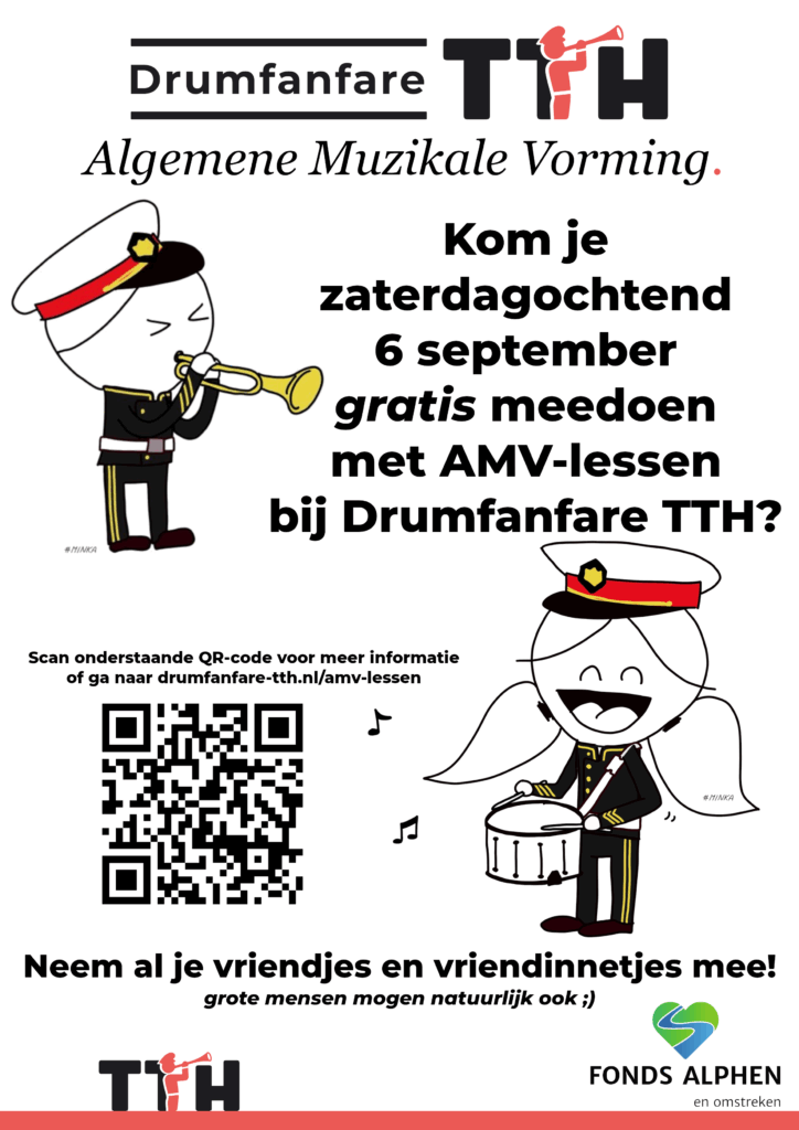 🎶 Doe gezellig mee! Gratis AMV-lessen op 6 september voor alle kinderen van Hazerswoude en omstreken 🥁Als je die dag mee wil doen, stuur even een mailtje aan lessen@drumfanfare-tth.nl 🌟Tot dan!